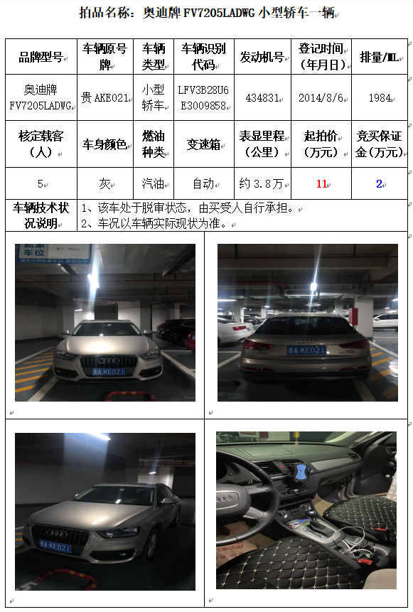 受委托,本公司定于2021年10月11日(星期一)下午14:30時(shí),在貴陽市中華南路20號(hào)新大陸數(shù)碼廣場(chǎng)10樓D座拍賣廳公開拍賣以下車輛: