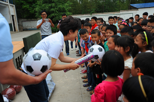 六一前夕,開元集團(tuán)董事長許明月在得知洛寧縣東宋鎮(zhèn)郭村小學(xué)桌椅陳舊、體育器材短缺的消息后,安排購置了80套桌椅板凳、1副藍(lán)球架、1張乒乓球臺、5個足球、5個籃球、2副羽毛球拍、2副乒乓球拍等價值2萬余元物資,帶去開元人的深情厚誼。