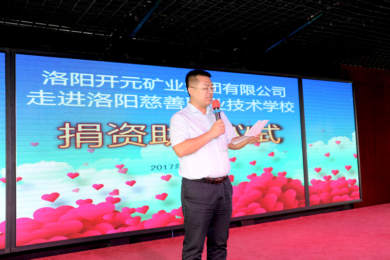 2017年9月21日上午,受許明月董事長委托,洛陽開元礦業(yè)集團(tuán)有限公司副總經(jīng)理楊春生、總經(jīng)理助理叢萬通、辦公室主任張愛利及集團(tuán)員工代表赴洛陽慈善職業(yè)技術(shù)學(xué)校進(jìn)行捐資助學(xué)活動,洛陽慈善總會副會長兼秘書長郝春苑、慈善學(xué)校全體師生及相關(guān)媒體記者等參與了本次活動。