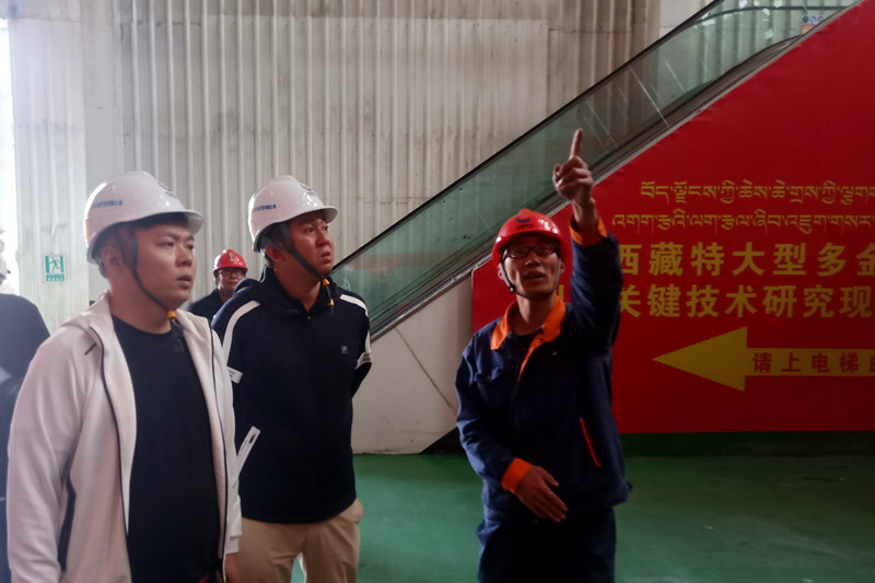 許總一行,首先在華泰龍公司工程技術(shù)人員的陪同下來到選礦廠。繞過彎彎曲曲的山路,從綠意盎然的山腳到白雪皚皚的山頂,這座日處理礦量40000噸的選礦廠在海拔5300米的礦業(yè)工地顯得格外令人矚目。許總在參觀考察該選廠各工段工藝流程、設(shè)備運轉(zhuǎn)實況的同時,也與選廠技術(shù)工作人員進行了深入的交流探討,聽完對方的介紹,許總高度贊揚了這座高原選廠在華泰龍員工手中所創(chuàng)造的生產(chǎn)奇跡,此次交流也為開元礦業(yè)集團礦山板塊下一步的探、采、選業(yè)務(wù)發(fā)展獲取了科學(xué)先進的建設(shè)經(jīng)驗。